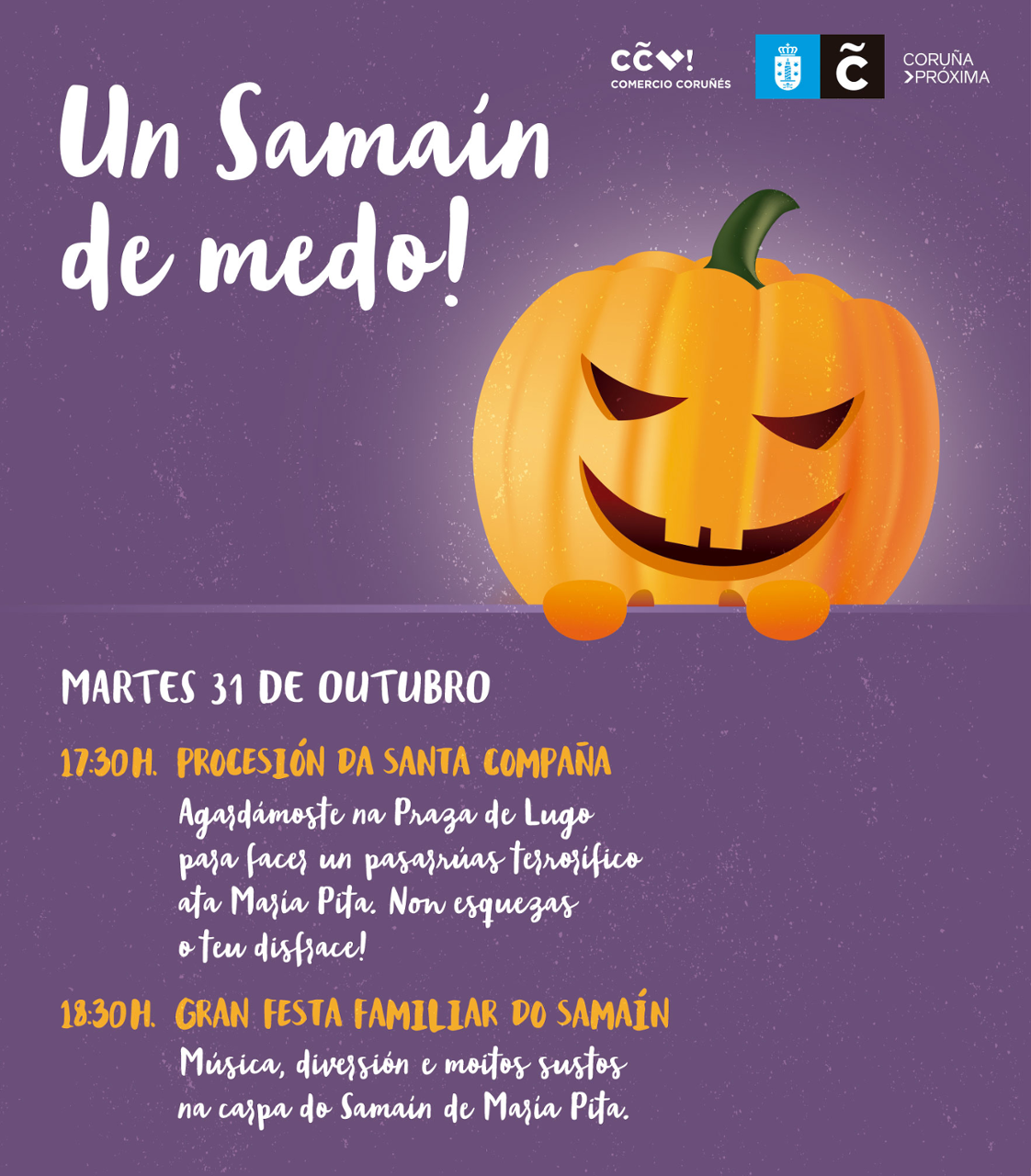 El próximo martes 31 de octubre se celebrará en la Plaza de María Pita la Fiesta de Samaín, con la que finaliza una actividad programada por el Ayuntamiento para dinamizar el comercio de barrio. Se desarrollaron acciones propias de esta fiesta, en la que participaron niños de educación primaria de los centros educativos interesados, que recorrieron las tiendas de barrio. Durante el mes de octubre el comercio repartió rifas entre sus clientes para participar en un sorteo de 200 vales de compra