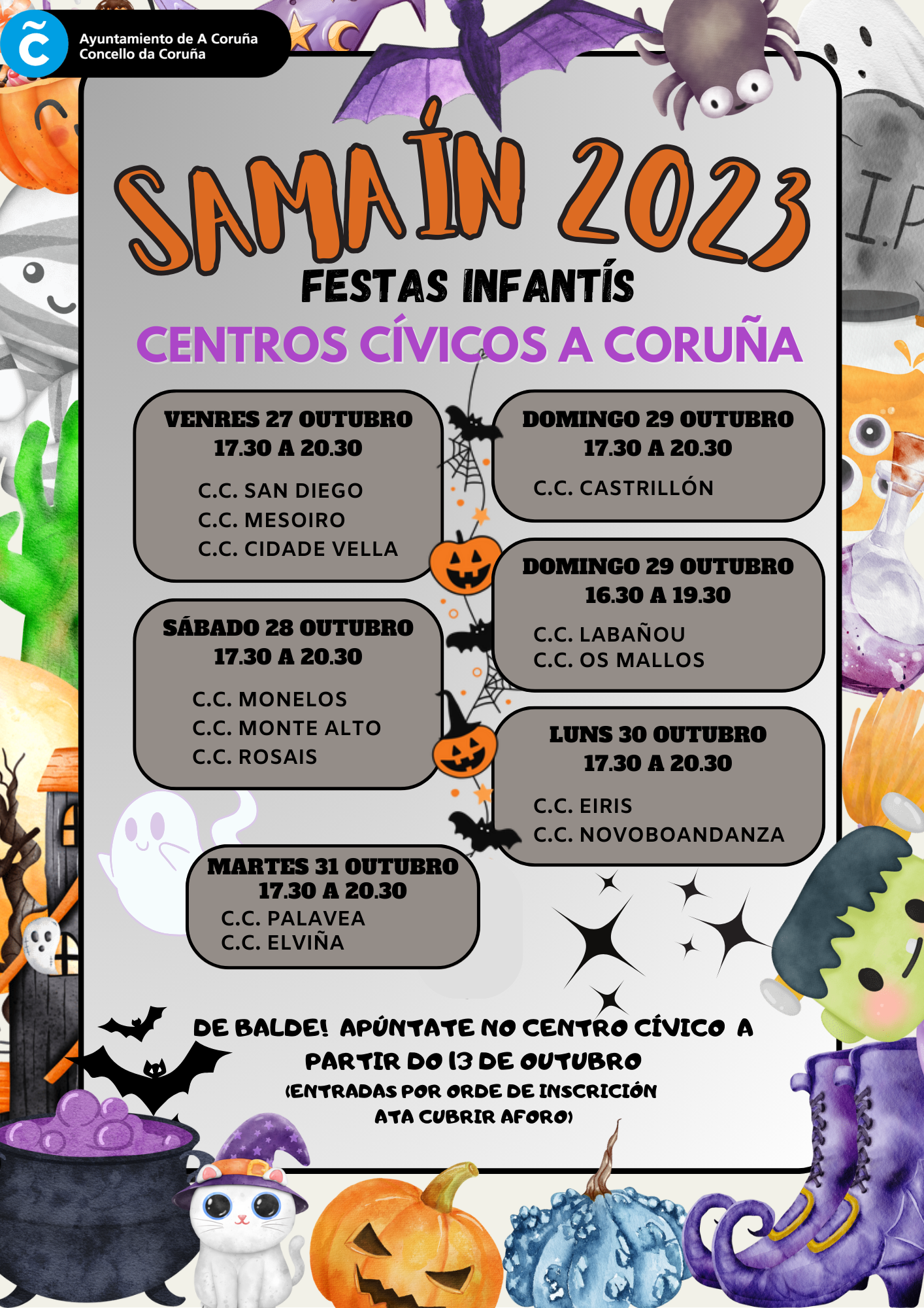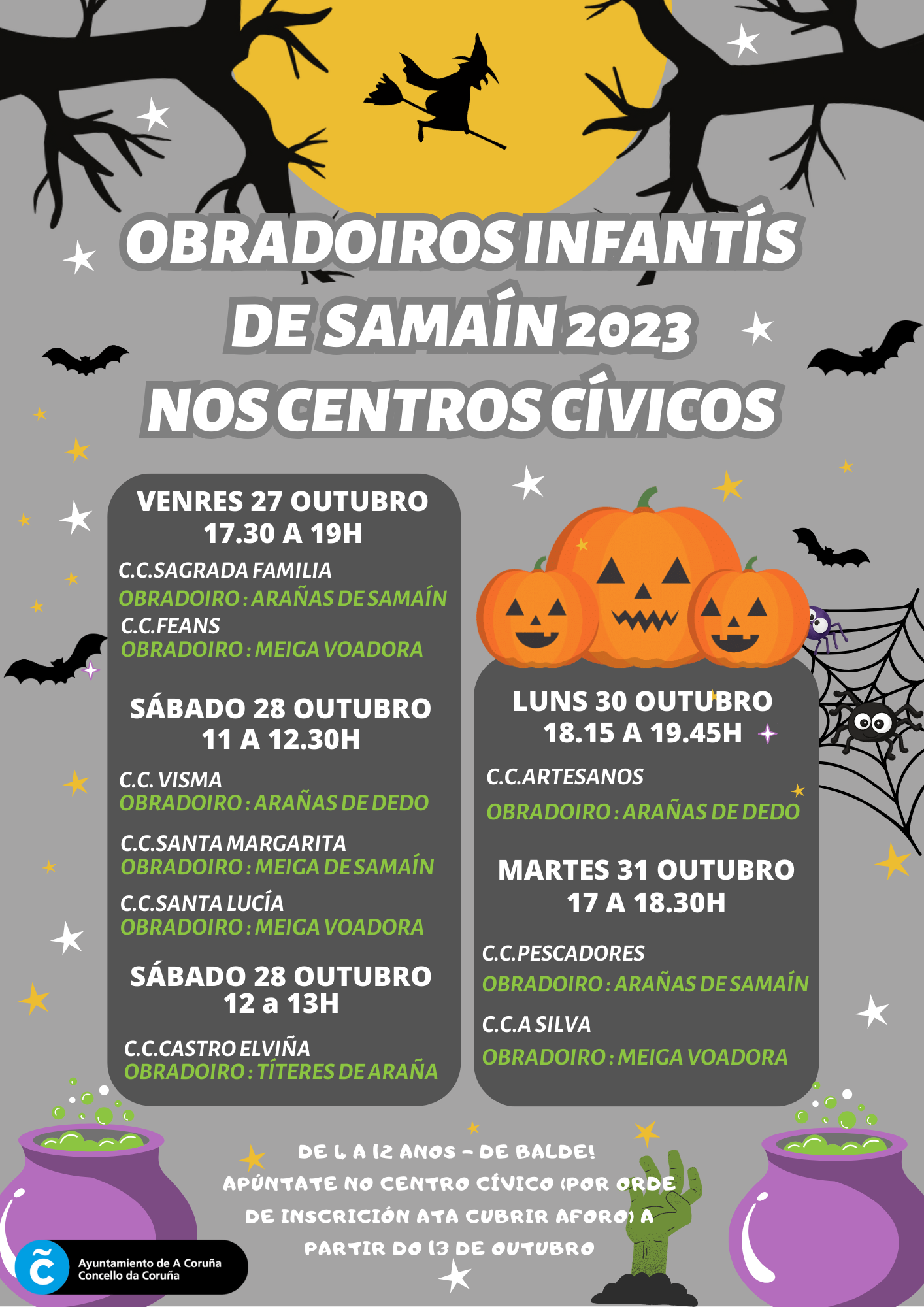 Hoy, viernes 13 de octubre, abre el plazo de inscripción en las actividades infantiles con motivo del Samaín 2023, que tendrán lugar en los Centros Cívicos Municipales.