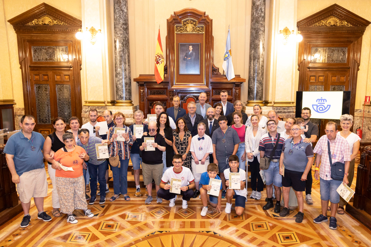 A alcaldesa da Coruña, Inés Rey, presidiu o acto de entrega de premios do concurso de artes plásticas 'Un xenio volve á casa', correspondente á sexta convocatoria de axudas 'Cultura Accesible e Inclusiva', organizada pola Fundación Emalcsa e a Sociedade Filatélica da Coruña. A rexedora estivo acompañada pola concelleira da Área de Benestar Social, Yoya Neira, e polo presidente da Sociedade Filatélica, José Luis Rey.