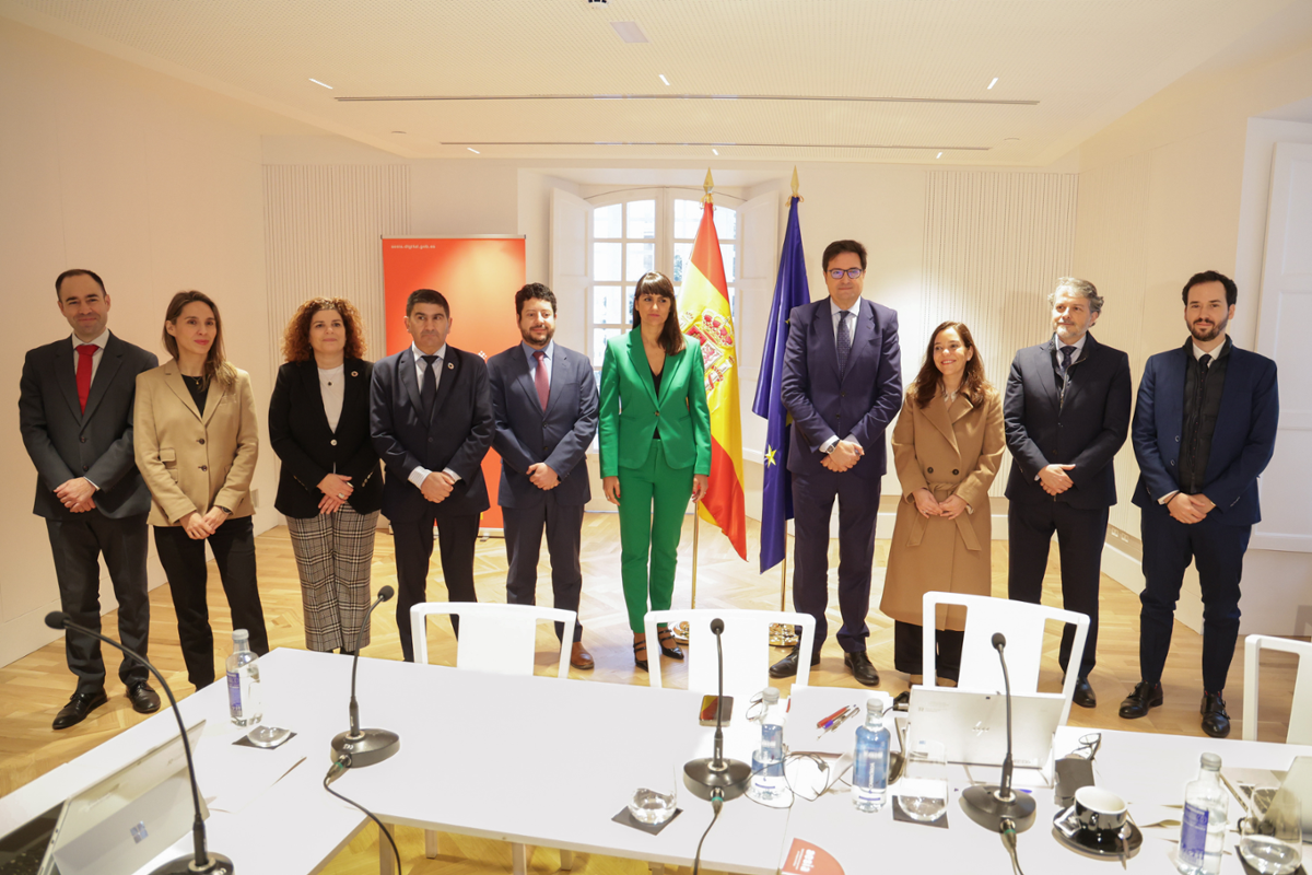 A alcaldesa, Inés Rey, recibiu esta mañá aos asistentes á primeira reunión presencial do consello reitor da Aesia celebrada na Coruña, na súa nova sede transitoria na Casa Veeduría, na Cidade Vella. A rexedora recibiu este venres ao ministro de Transformación Digital e Función Pública, Óscar López, que presidiu o acto. Tamén estiveron presentes a secretaria de Estado de Digitalización e Inteligencia Artificial, María González Veracruz, e o director da Aesia, Ignasi Belda. A alcaldesa acompañou a Óscar López durante a visita á nova sede sede provisional da axencia.
