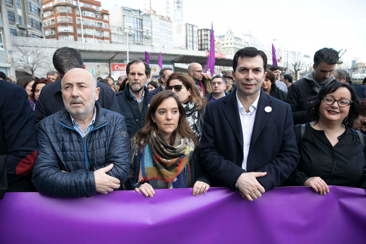 La alcaldesa participó esta mañana en la manifestación por el Día Internacional de la Mujer, en que cerca de doce mil coruñesas y coruñeses partieron del Obelisco y fueron hasta la plaza de Tabacos para demostrar que ellas y ellos “son el cambio”