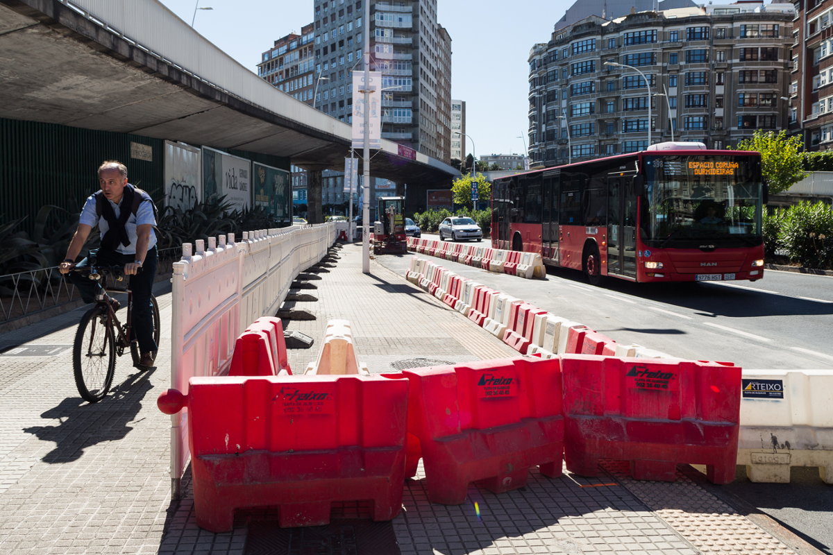 De manera paralela a esta obra, tal y como indica el edil, avanzan asimismo los trabajos en el entorno de la plaza de Ourense, en la que se inician las actuaciones precisas para la ampliación de la acera y el adelantamiento de la parada de autobús "que permitirá agilizar las maniobras de acercamiento del transporte público urbano y crear un corredor de carril bici por detrás de la misma". "Este sistema garantiza la seguridad de los y de las ciclista, que no tienen que compartir espacio con los vehículos, y sigue los criterios habituales que aplica el Ayuntamiento, como ya hizo en el tramo de carril bici entre la glorieta de Monelos y Matogrande", apunta.