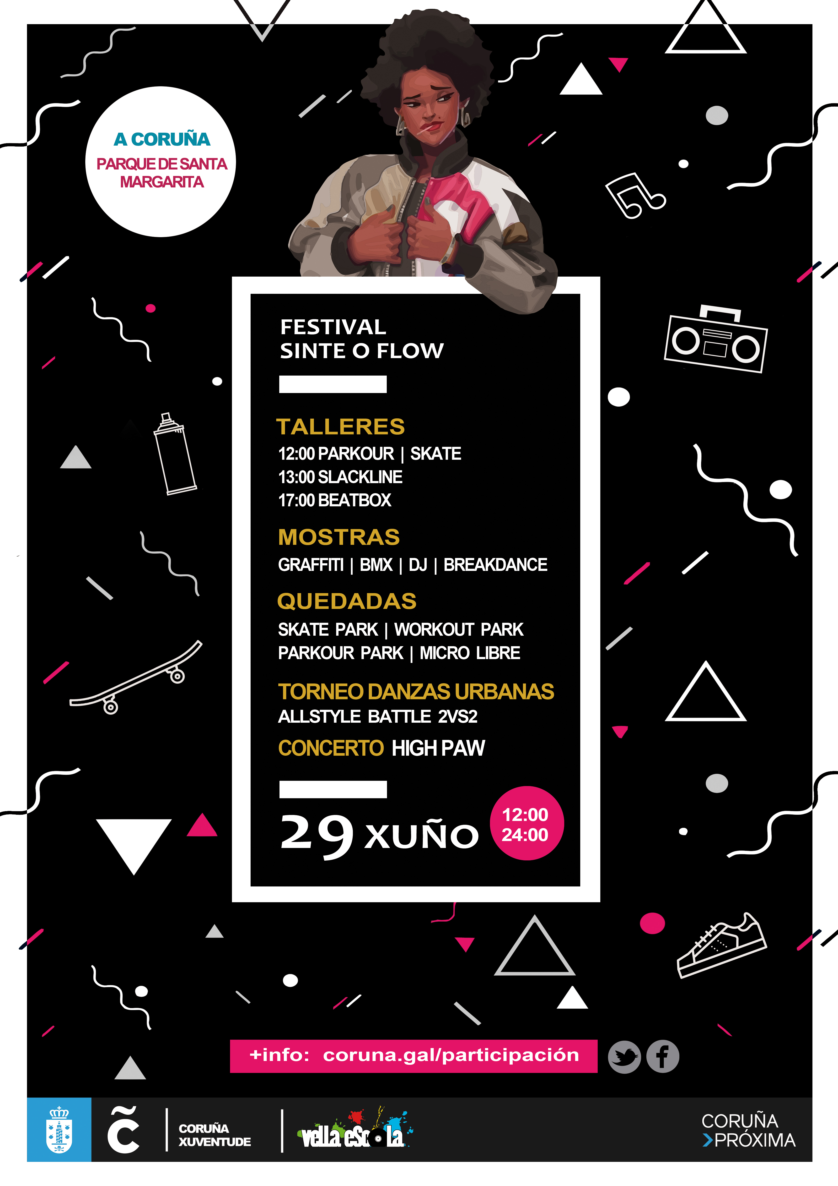 La concejal de Participación e Innovación Democrática, Claudia Delso, presentó esta mañana la segunda edición del festival Cultura Urbana: sinte o flow, una jornada dirigida a la juventud con talleres, muestras y exhibiciones de diferentes disciplinas artísticas y deportivas de la cultura urbana también abiertas para el vecindario de todas las edades que quiera participar. La edil explicó que el objetivo del festival es facilitar la participación activa en experiencias de educación no formal, vinculadas a la cultura urbana, que favorezcan la convivencia y la inclusión social". La jornada, que organiza el área de Mocidade en colaboración con la asociación cultural Vella Escola, se celebrará el 29 de junio, entre las 12.00 y las 00.00 horas, en el parque de Santa Margarita.