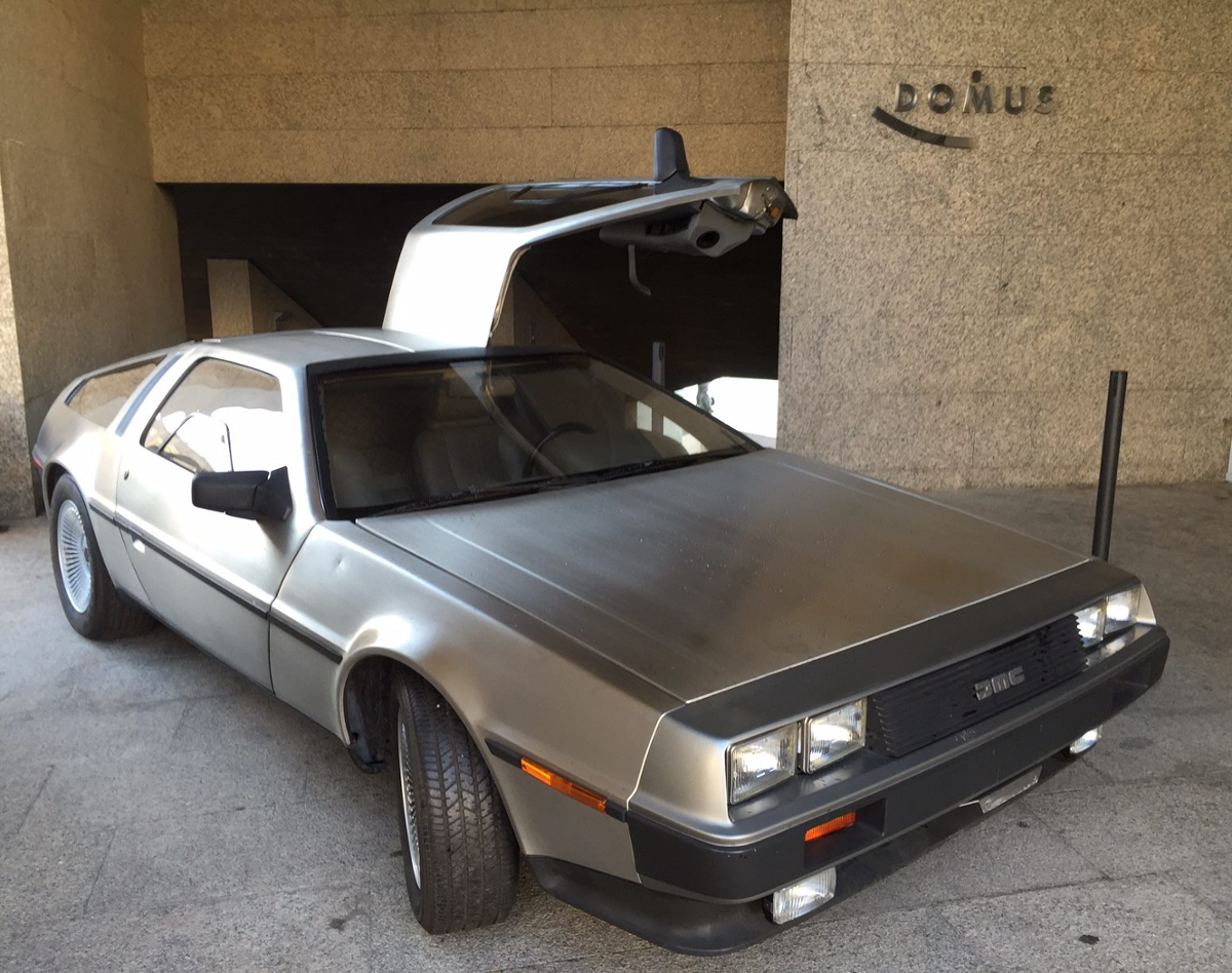 La entrada de la Domus expone desde esta mañana un DeLorean DMC-12, la máquina del tiempo que utilizaban los protagonistas de la saga Regreso al Futuro para viajar en el tiempo, un modelo, coincidiendo con la nueva sesión del ciclo Spoiler Científico, que este sábado dedica la sesión a analizar la ciencia que hay detrás de Regreso al Futuro II. En esta nueva entrega del ciclo de divulgación científica, Borja Tosar y Xavier Fonseca hablarán de algunos de los “inventos” que aparecen en la película, como los aeropatines, los reactores de fusión nuclear o los vehículos voladores, y abordarán los viajes en el tiempo.