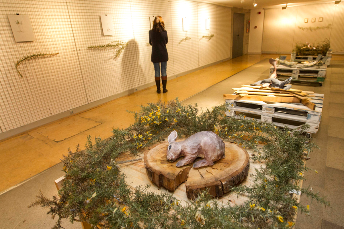La exposición de la artista coruñesa, que podrá visitarse desde hoy y hasta el 28 de febrero, y en la que predomina la escultura, mezcla animales con el entorno del océano y el monte