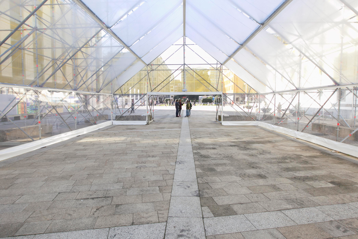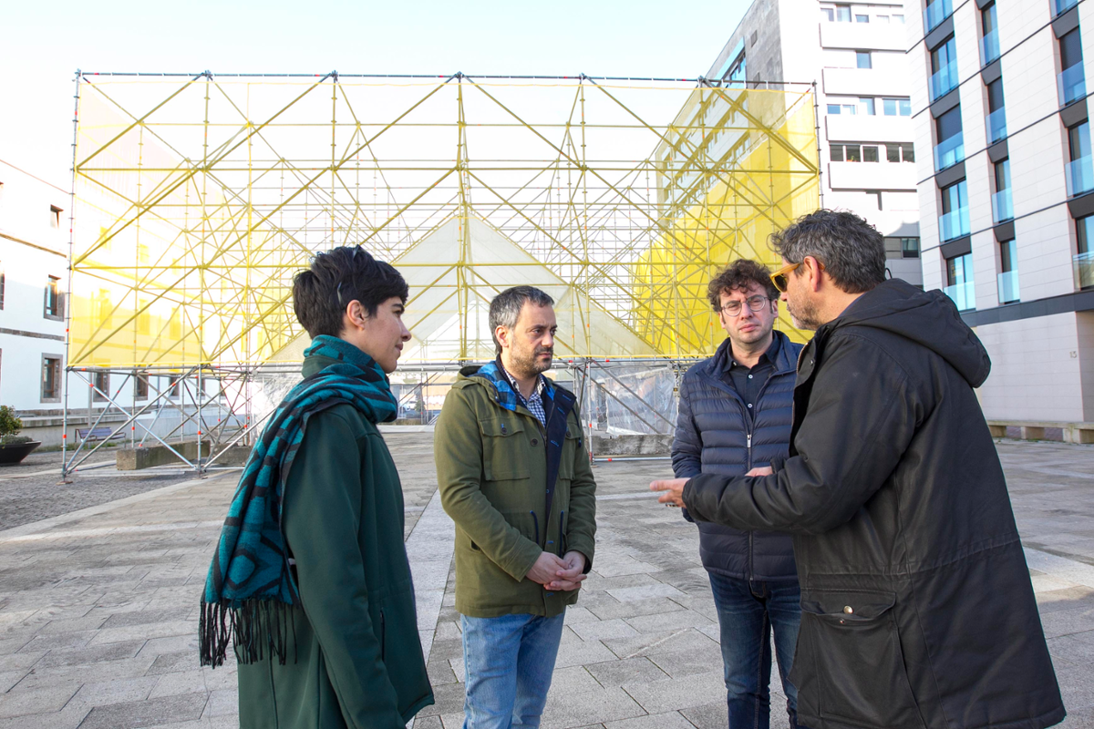 La plaza de la Fábrica de Tabacos acoge, desde hoy, la estructura arquitectónica singular que albergará en los próximos meses la actividad del proyecto Tribuna Pública, una propuesta social y cultural, plural y participativa impulsada por el gobierno local que pretende implicar a la ciudadanía en la reflexión sobre la recuperación de los muelles interiores de A Coruña y su futuro como espacio de interés público. El alcalde, Xulio Ferreiro, acompañado de la concejala de Participación e Innovación Democrática, Claudia Delso, y del edil de Culturas, Deporte e Coñecemento, José Manuel Sande, visitaron esta mañana el espacio, que contará con un acto de apertura institucional en el mes de enero, momento en el que se iniciarán las actividades.