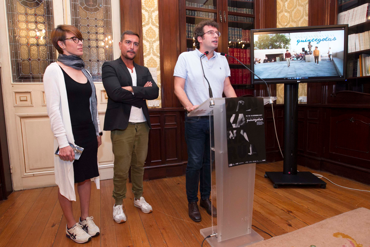 El Palacio de María Pita acogió esta mañana la presentación de la tercera edición del Festival de Danza en la calle Quincegotas, que se celebrará entre los días 22, 23 y 24 en diferentes localizaciones de la ciudad así como del área metropolitana. El concejal de Culturas, Deporte e Coñecemento, destacó la continuidad y afianzamiento de un proyecto impulsado por el gobierno local "que interpreta el espacio público como el lugar idóneo para la intervención artística y cultural". "En esta tercera edición la danza de Quincegotas llegará por primera vez al Barrio de las Flores. La intervención artística contribuye, dentro de los procesos de pluralidad geográfica, capacidad metafórica, búsqueda de singularidad y deslocalización del Festival Quincegotas a fijar la mirada en uno de los hitos de la construcción social en nuestra ciudad", señaló el concejal, que estuvo acompañado en la presentación por dos de las personas responsables de la producción y dirección artística del festival, el actor Ramiro Neira y la bailarina Kirenia Martínez.