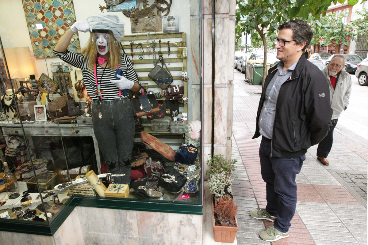 El concejal de Emprego e Economía Social, Alberto Lema, visitó esta mañana uno de los establecimientos de cercanías del barrio de Os Mallos que participa de las actividades comprendidas dentro del Plan Municipal para la Dinamización del Comercio Minorista en esta zona de la ciudad. En concreto, el responsable municipal acudió a la tienda sita en la Avenida de Os Mallos, integrante en la acción Comercio con Mimo, que consiste en dinamizar los escaparates de las tiendas durante unas horas a la semana con la actuación de profesionales clowns y mimo. El edil comentó que a lo largo de todo noviembre el Ayuntamiento, en colaboración con los y con las comerciantes de la zona, habilitó la actuación de artistas de mimo en los escaparates de 12 tiendas del barrio. "Los diferentes estudios llevados a cabo sobre el comercio local destacan que una de sus fortalezas no sólo está en la calidad del producto, sino en el trato personalizado, en el especial cariño de los y de las comerciantes con su clientela. Por eso apostamos por hablar de forma metafórica de comercio con mimo, con una actividad que, a la vez, es un reclamo para acercarse a las tiendas", explicó Lema, que recordó que las actuaciones en los escaparates participantes se producen por la mañana, a partir de las 12.00 horas, y por la tarde, a las 17.30 horas. Esta acción de dinamización, que comenzó a principios de mes, finalizará el próximo sábado 25.
