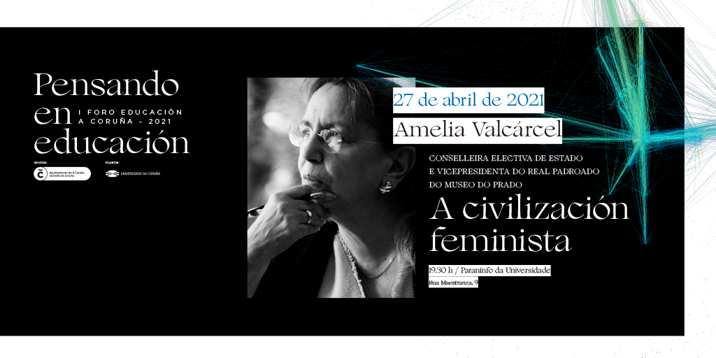 La segunda conferenciante del foro "Pensando en educación" será Amelia Valcárcel, consejera electiva de Estado y vicepresidenta del Real Patronato del Museo del Prado, que estará el 27 de abril para abordar "La civilización feminista".