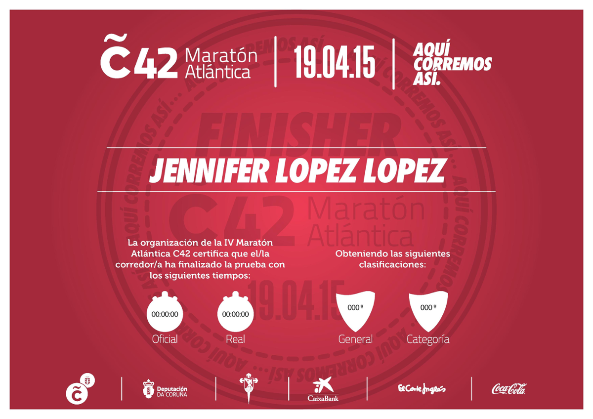 Los 1080 finisher que cruzaron la meta de María Pita el domingo pasado en #Coruña42 ya pueden lucir orgullosos además de su medalla personalizada su diploma que acredita que vencieron a la Maratón Atlántica.
