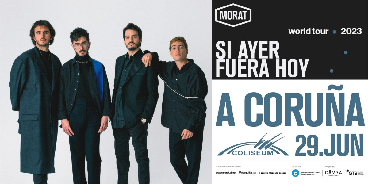 A banda colombiana Morat anunciou esta semana as primeiras datas da súa xira 'Si ayer fuera hoy'. O primeiro concerto será o da Coruña, o próximo 29 de xuño. A partir deste venres, 23 de decembro, ás 11.00 horas, estarán dispoñibles as entradas, que poderán adquirirse en Enterticket, Ataquilla e a páxina web de Morat de maneira telemática e no despacho de billetes da praza de Ourense de maneira presencial. A Coruña será unha das poucas cidades españolas incluídas na xira da banda colombiana.