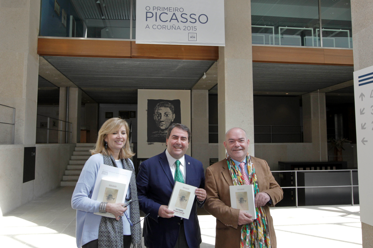 El alcalde de A Coruña, Carlos Negreira, la directora del Museo de Belas Artes da Coruña, Ángeles Penas, y Rafael Inglada han presentado hoy en el Museo de Belas Artes el libro Diccionario Picasso - A Coruña (1891-1895).