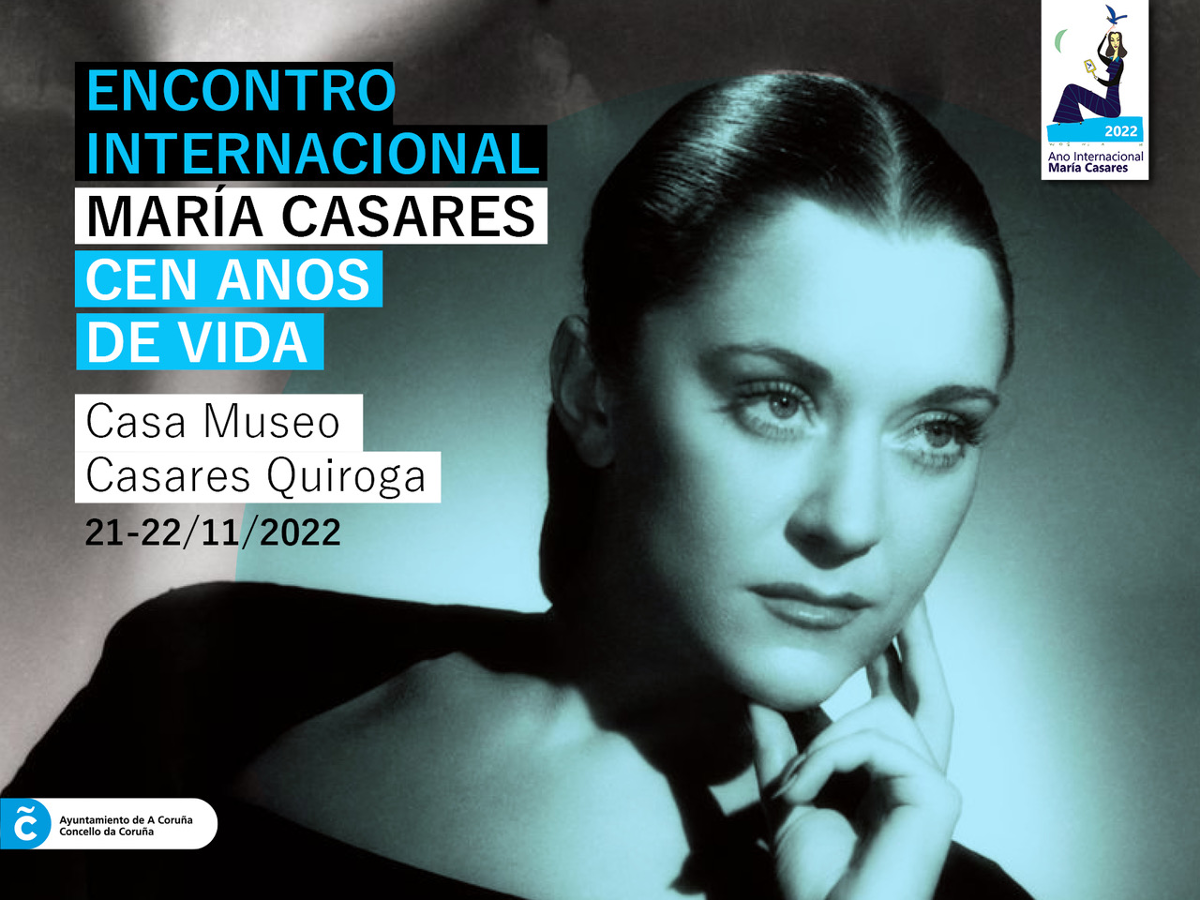 O encontro, denominado 'María Casares, cen anos de vida', analizará os días 21 e 22 deste mes a figura de María Casares desde moi diferentes ópticas e perspectivas, abordando aspectos como a súa vida tanto na Coruña como no seu exilio en Francia, a súa traxectoria profesional no teatro e no cine e a súa memoria familiar. Debatiranse, ademais, temas como a memoria histórica ou exilio republicano.