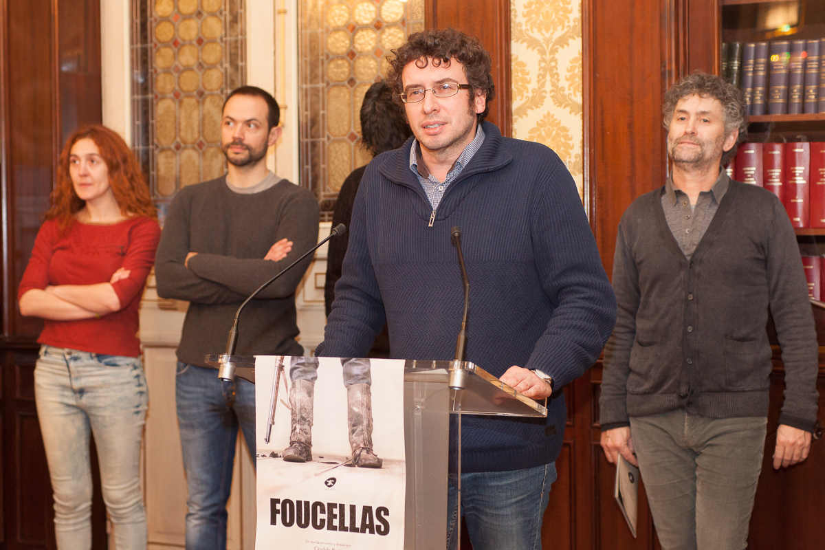 O concelleiro de Culturas, Deporte e Coñecemento, José Manuel Sande, participou na mañá deste mércores da presentación da peza teatral Foucellas, que a compañía Talía Teatro estrea mañá xoves, ás 20.30 horas, no Teatro Rosalía, unha obra que serviu ao responsable municipal para poñer en valor o papel da arte “como contribución necesaria ao esclarecemento da historia e, neste caso, case diríamos que descubrimento da memoria”. Neste sentido, Sande salientou a achega desta obra “como indagación sobre esa nosa historia non tratada”, e aludiu á figura do “Foucellas maquis, resistente, figura histórica”, pero tamén a “todos eses foucellas que podemos ser”. Na mesma liña, o autor do texto e director da obra, Cándido Pazó, describiu o espectáculo como unha reflexión, a partir do personaxe, “sobre conceptos que atinxen a Foucellas pero que sobre todo atinxen aos foucellas, aos resistentes”. “Facemos unha mistura dos dous conceptos, da persoa concreta, Benigno Andrade, e o que a persoa representa, para reflexionar sobre a resistencia”, indicou, para matizar que a obra “non é un biopic”.
