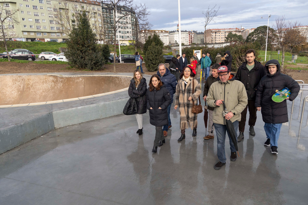 Na súa visita ao skate-park de Eirís, a rexedora estivo acompañada pola concelleira de Innovación, Mobilidade e Infraestruturas, Nereida Canosa, así como polo concelleiro de Deportes, Manuel Vázquez. Tamén asistiu a presidenta da Federación Galega de Patinaxe, María Jesús Vázquez, e representantes de entidades locais de skaters.