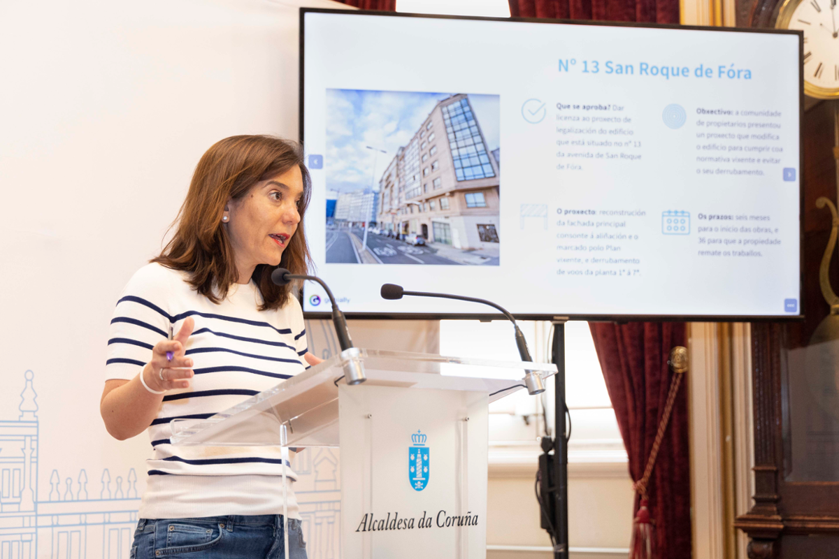 A Xunta de Goberno Local do Concello da Coruña aprobou este mércores a concesión da licenza para o proxecto de legalización do edificio situado no nº 13 da avenida de San Roque de Fóra. Sobre este edificio pende unha orde para a súa demolición total que vén a raíz dunha sentenza do Tribunal Superior de Xustiza de Galicia.