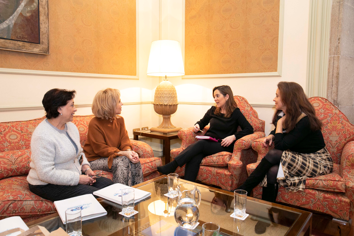 A alcaldesa, Inés Rey, e a concelleira de Benestar Social, Igualdade e Participación, Yoya Neira, recibiron esta mañá no Pazo Municipal de María Pita a presidenta de Aspanaes, M.ª José Álvarez Folgar, e a directora xerenta da mesma asociación, M.ª Teresa Tiemblo Marsal.