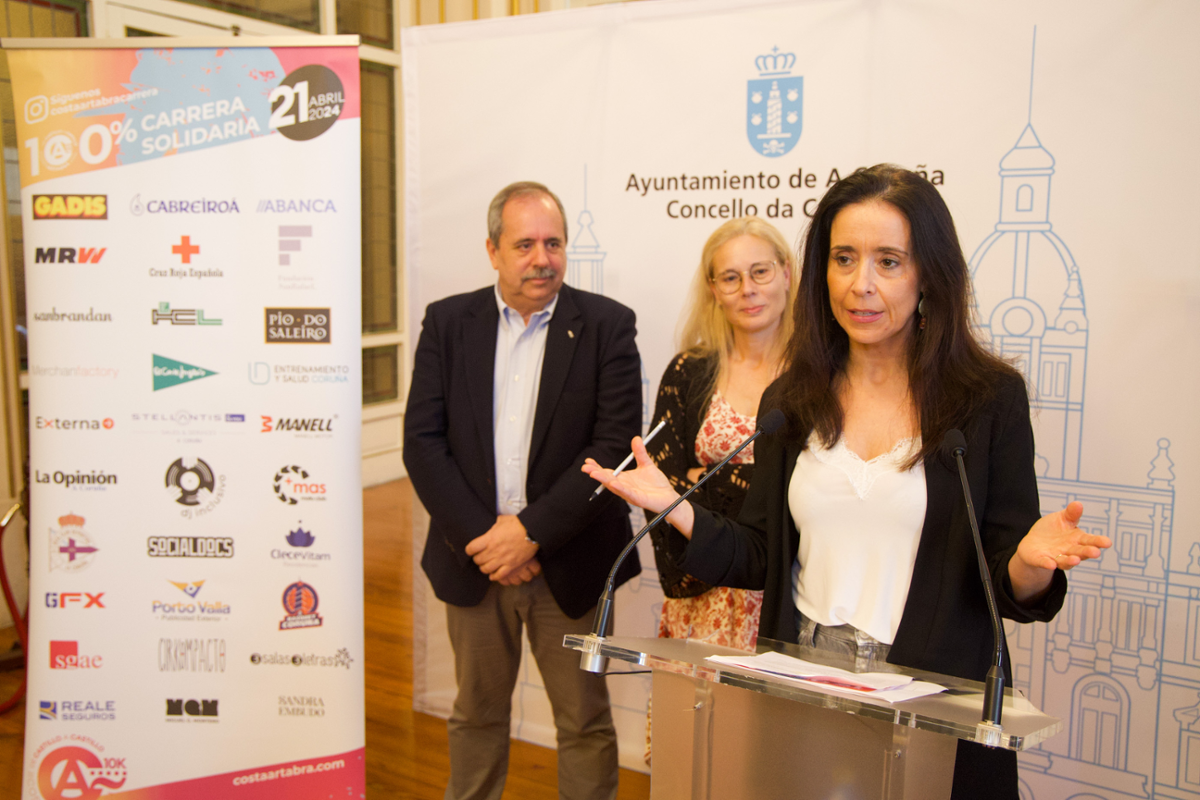 A concelleira responsable da Área de Benestar Social, Yoya Neira, presentou no Pazo de María Pita a II Carreira solidaria Costa Ártabra, que organizan o Comité Antisida da Coruña (CASCO) e a ONG de Oleiros Box Fit coa colaboración do Concello. Neira estivo acompañada polo concelleiro de Deportes, Manuel Vázquez; a concelleira de Deportes de Oleiros, Teresa Vázquez e o xefe do servizo provincial de Deportes da Coruña, Roberto García.