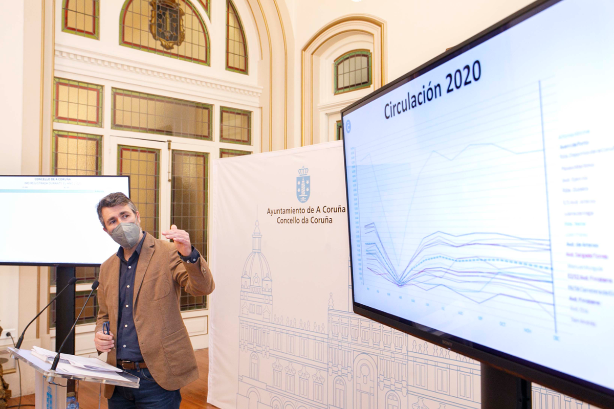 O informe de tráfico de 2020 revela que a mobilidade se reduciu na cidade un 25%. Así o manifestou hoxe o concelleiro de Urbanismo, Juan Díaz Villoslada, que anunciou que o Concello lle acaba de presentar ao Ministerio de Transportes e Axenda Urbana un total de tres manifestacións de interese con respecto á Estación Intermodal, á monitorización dixital do tráfico na cidade e a un plan en que se pretende establecer zonas de baixas emisións na Coruña. Para sufragar estes tres proxectos, solicitaranlle fondos de reestruturación Newt Generation á Unión Europea.