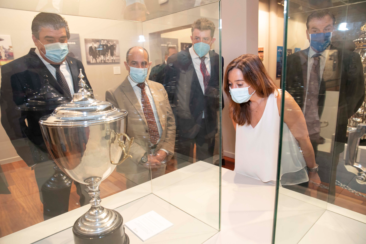 A alcaldesa inaugurou a mostra “Riazor 75: Recordos dun océano de soños” no Quiosco Alfonso, en que se percorre a historia do campo e todos os trunfos e curiosidades que se deron nel desde 1.944