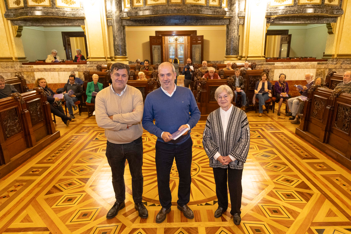 O salón de plenos do Concello da Coruña acolleu esta tarde a presentación do libro 'O ano no que A Coruña voltou a mirada a Picasso. A primeira homenaxe: 1971', editado polo Instituto de Estudios Coruñeses José Cornide co apoio do Concello da Coruña. O concelleiro de Fomento e Promoción da Cidade, Gonzalo Castro, presidiu o acto xunto a Emilio Grandío e Ana Romero Masiá, autores da publicación.