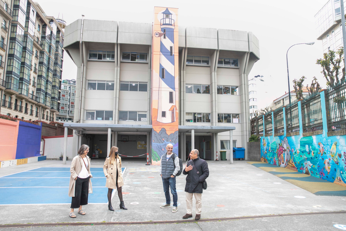 Neste sentido, o Goberno municipal de Inés Rey promoveu o pintado dun mural de temática mariña relacionado cos faros, dando continuidade a intervencións previas executadas no patio do CEIP Zalaeta para fomentar a creatividade entre os máis pequenos, así como os xogos e a relación do alumnado coa natureza.