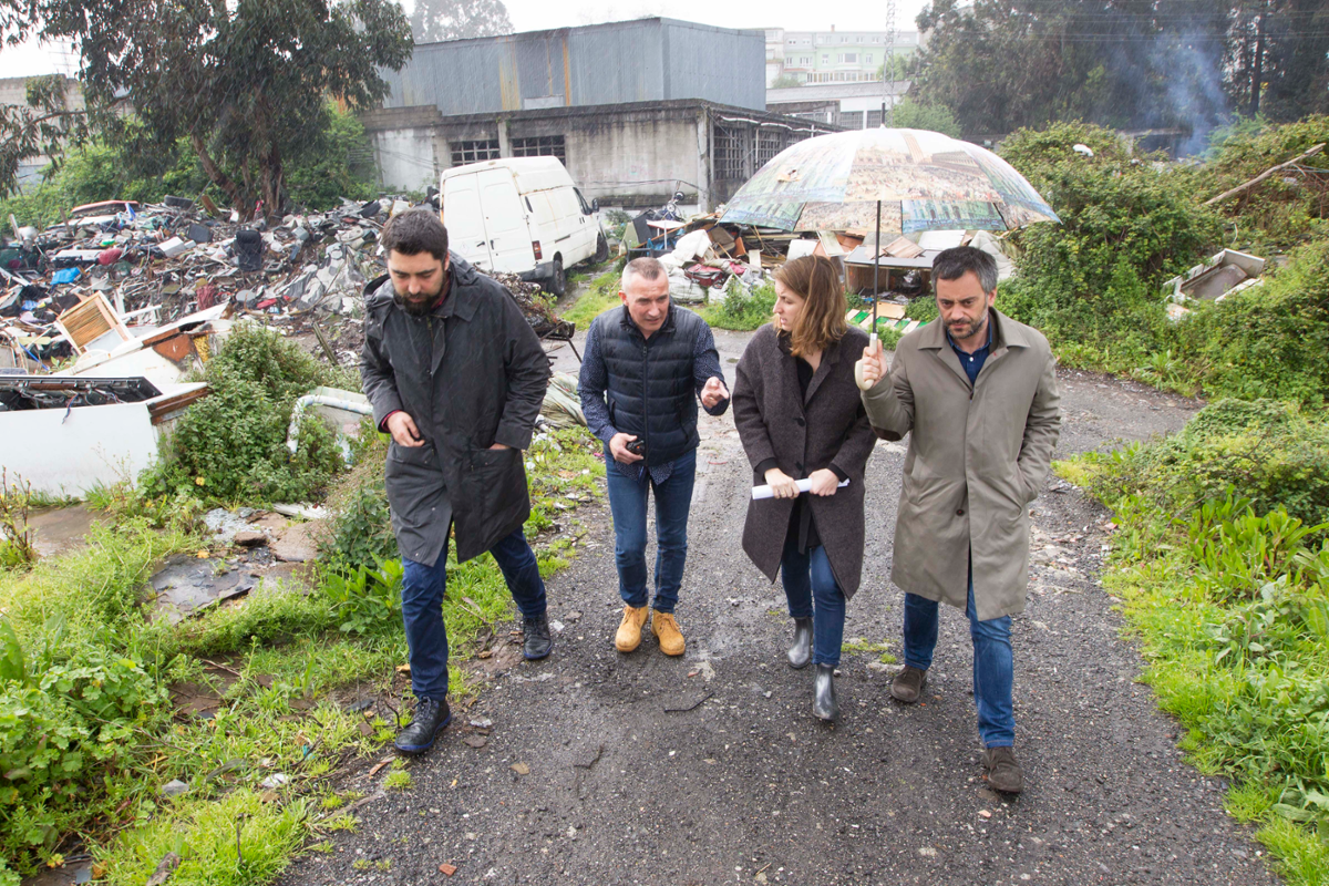 El alcalde, Xulio Ferreiro, y el concejal Xiao Varela visitaron el asentamiento, donde los servicios municipales llevan culminado el realojamiento de 13 familias en los últimos meses, dentro de un programa transversal que abarca medidas educativas, sociolaborales y ambientales