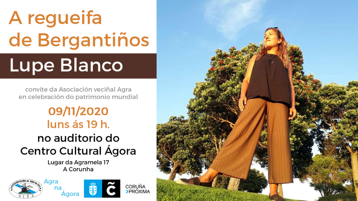 A asociación veciñal Agra, do barrio da Agra do Orzán, convida a celebrar, mesmo anticipadamente, o día internacional do patrimonio mundial, coa actuación de Lupe Blanco, unha das nosas máis rabudas regueifeiras, que conseguirá que cantemos os versos improvisados polo público.