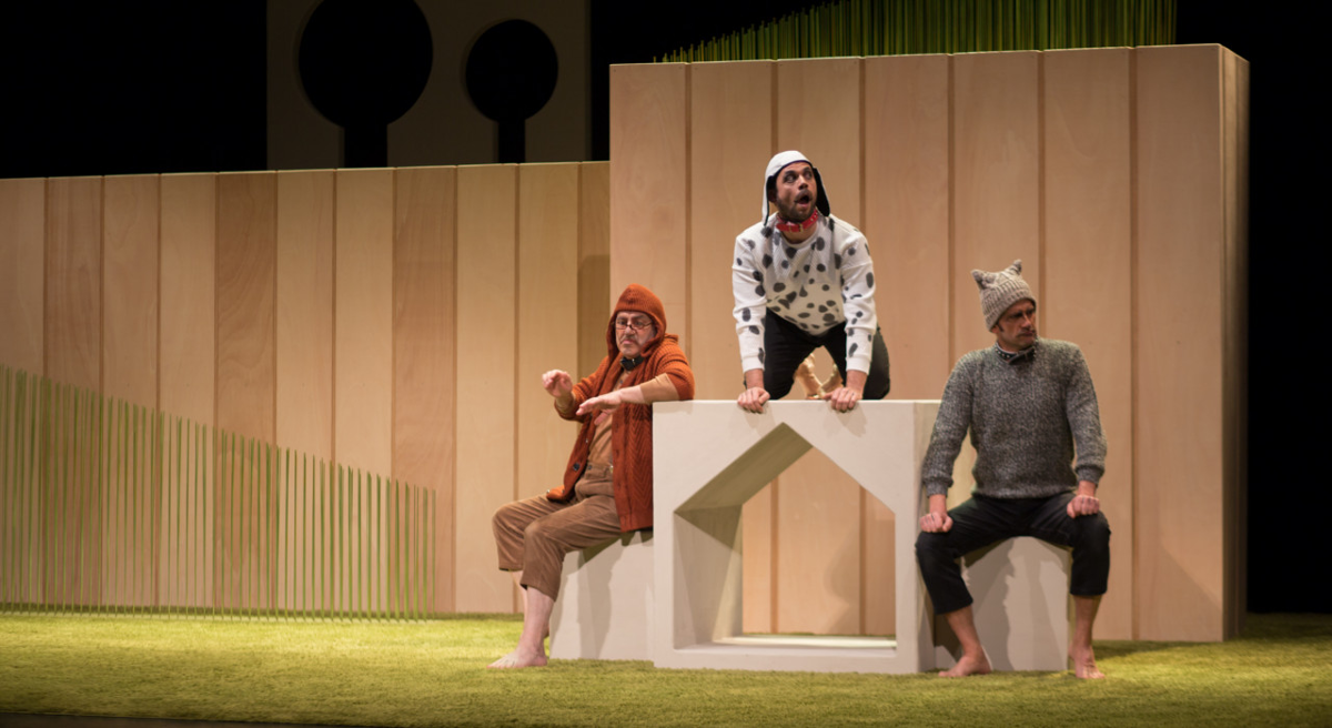Tres actores. Tres perros. O tres actores que hacen de perro. Sin dejar de ser actores. Sin dejar de ser perros. Están recluidos en un recinto que les preparó su amo. Muy grande, muy cómodo, muy ameno, muy limpio... pero recinto. Bien tratados, bien atendidos, bien alimentados, bien acariciados... pero recluidos. Fuera del recinto está la libertad. Con sus malestares, sus incertidumbres, sus problemas, sus peligros... pero libertad. Cada uno de los tres afronta el conflicto según su personalidad. O según su canalidad. Y todo va derivando cara una tragedia... que nunca deja de ser comedia. Comedia absurda. Comedia paródica. Comedia metafórica.