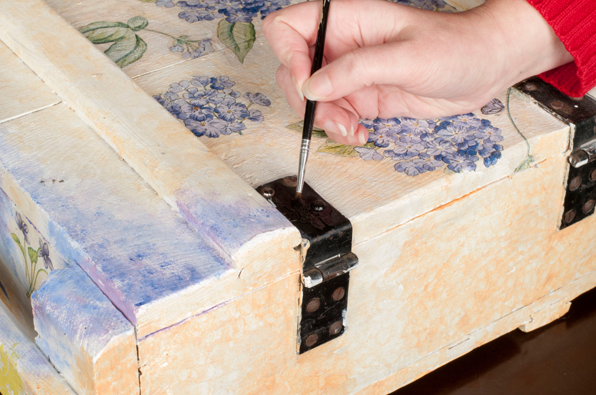 O taller baséase en decorar obxectos como caixas, bandexas, pratos, etc. con papel de arroz ou papel de pano de mesa decorado.