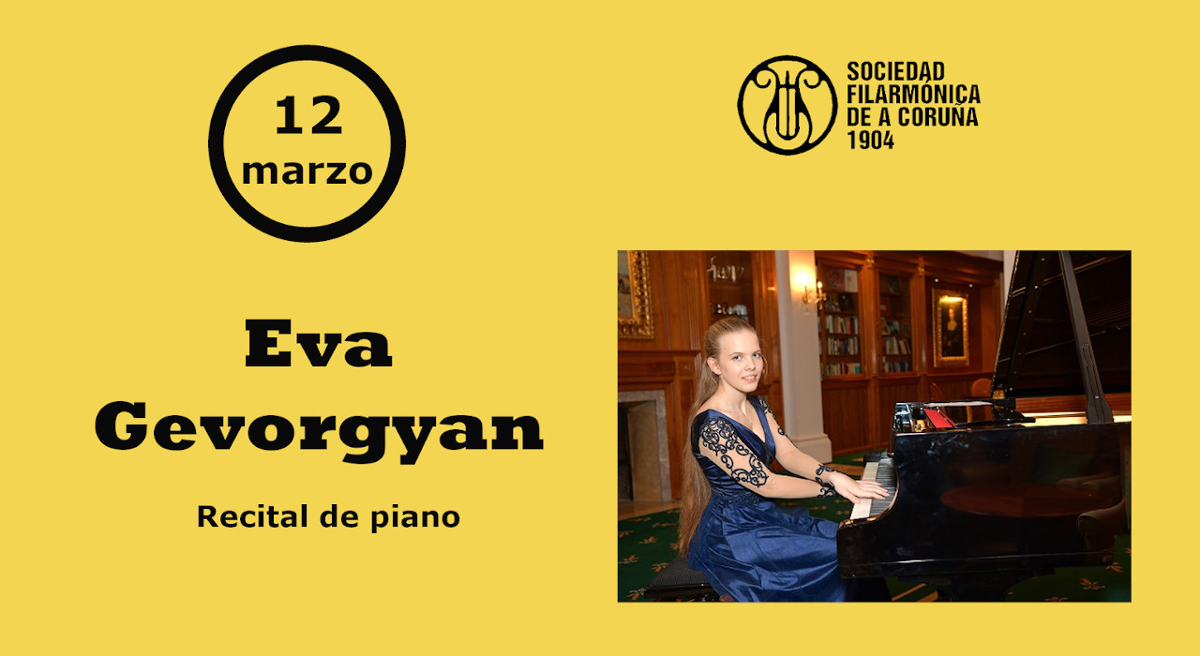 La jovencísima pianista rusa Eva Gevorgyan vuelve a nuestra ciudad, esta vez para ofrecer un recital de piano solo, después del enorme éxito en su colaboración con la OSG donde la crítica local titulaba "El talento de Eva Gevorgyan entusiasma en el Palacio de la Ópera" (Pablo Sánchez Quinteiro). Una oportunidad para deleitarse con música de compositores como Beethoven, Brahms, Falla y Prokofiev