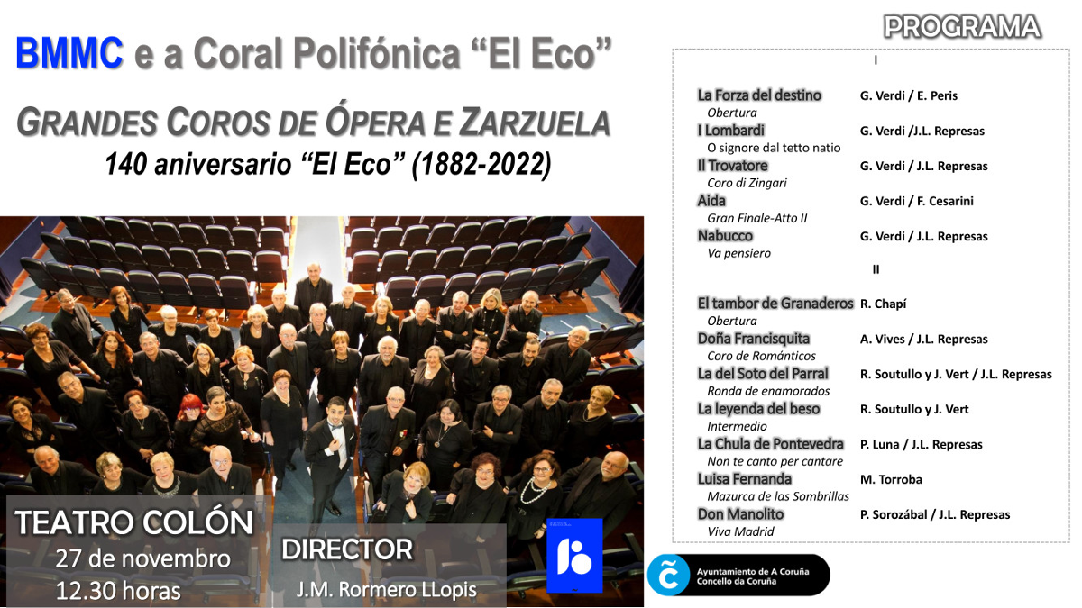 A Banda Municipal de Música de A Coruña, comprácese en convidalo/a ao seu próximo concerto que terá lugar o domingo 27 de novembro, ás 12.30 h. no Teatro Colón, a entrada é de balde ata completar o aforo.