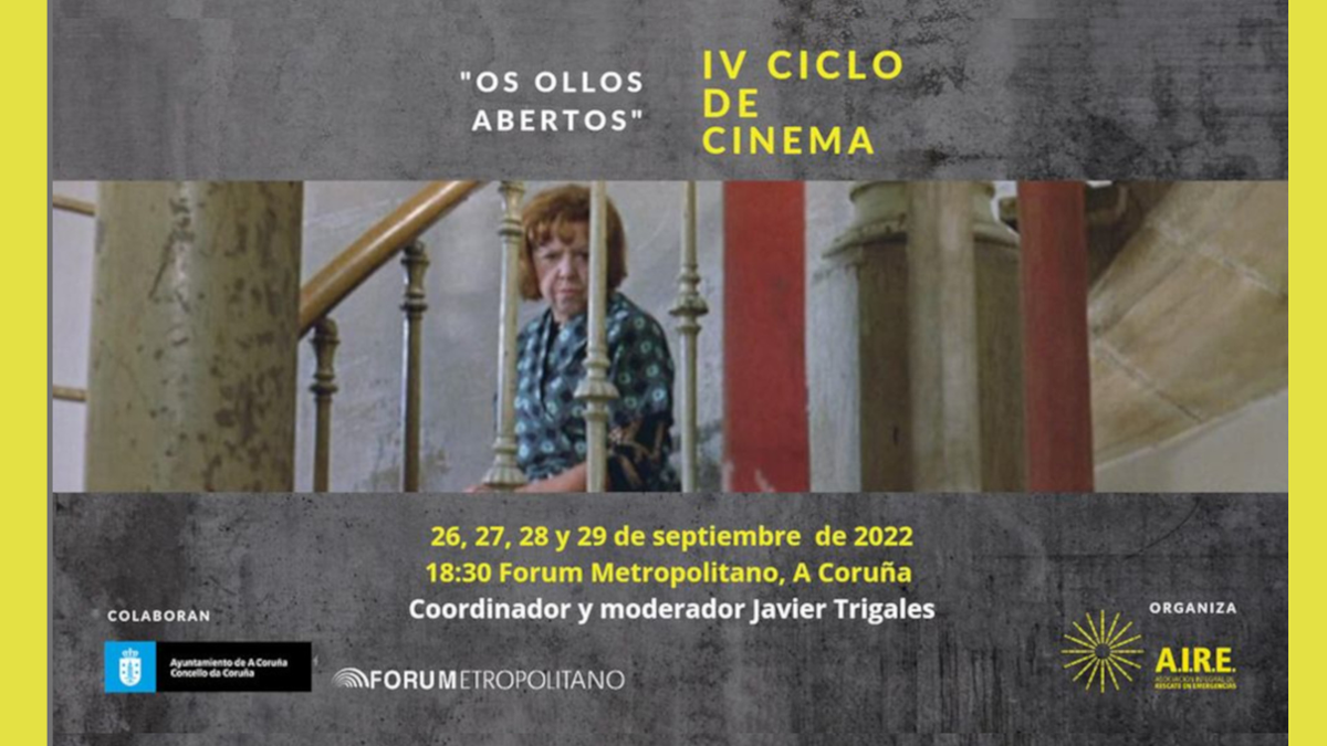 "Os ollos abertos" é un ciclo de cinema que na súa cuarta edición se realizará na Coruña do 26 ao 29 de setembro. Durante eses días proxectaremos catro películas que afrontan os problemas relacionados coas migracións desde unha perspectiva positiva e esperanzadora. Ao finalizar cada pase haberá un pequeno coloquio no que profundaremos sobre a temática proposta pola película.