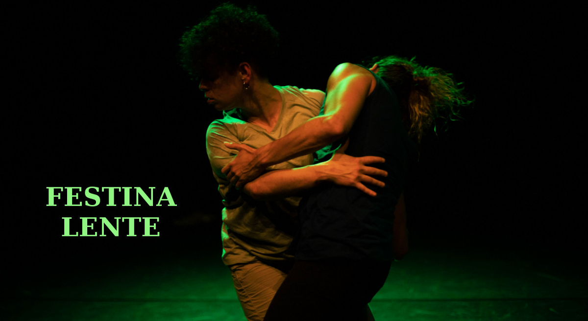 Festina lente é un avance constante que busca unha reflexión do momento presente. Nun mundo no que a pel-pantalla coloniza as nosas relacións, preguntámonos se é posible o encontro, mirar iso que non se ve, entrar e parar. Preguntámonos cómo deixar xurdir novas realidades, fóra dos remuíños do capitalismo que devora, cada vez máis, a corporalidade