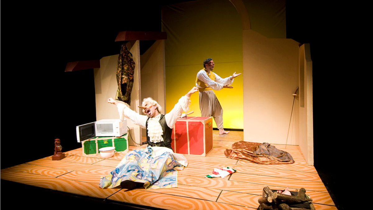 Farsa que respira da comedia da arte, ambientada na Italia do século XVIII e conta a historia de dous personaxes ben diferentes e, ao tempo, moi parecidos.