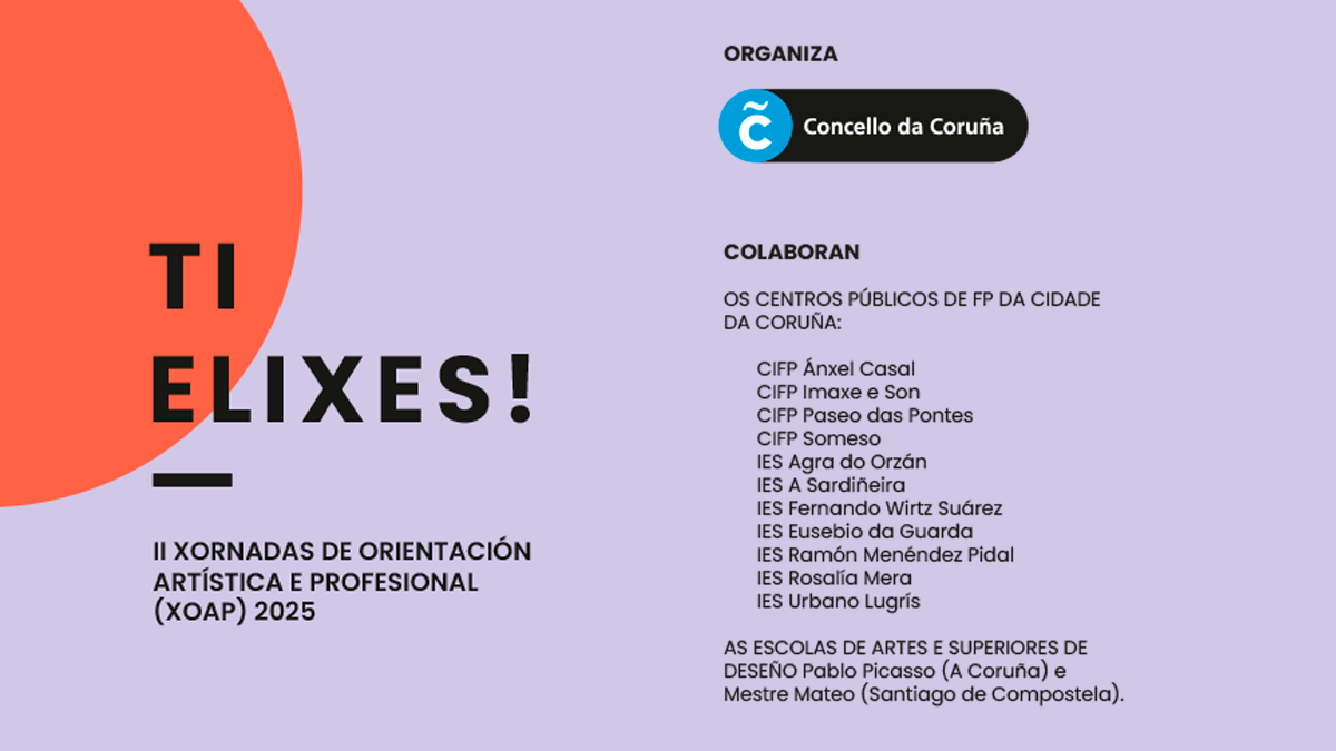 Organizadas por el Servicio Municipal de Educación del Concello de A Coruña, estas jornadas tienen como objetivo informar sobre los estudios Superiores de Deseño y los ciclos de Formación Profesional y enseñanzas Artísticas (ordinaria y básica) que se imparten en los centros públicos de la ciudad de A Coruña.