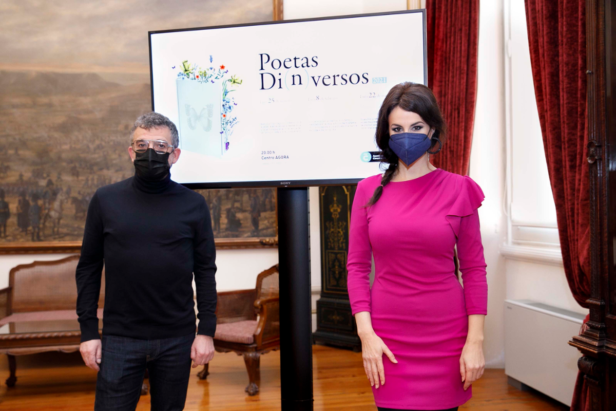 O director da Área de Cultura, Rómulo Sanjurjo, e a coordinadora do ciclo Poetas Di(n)versos, Yolanda Castaño, presentaron esta mañá unha nova entrega da 12.ª edición, que ofrecerá este luns no Centro Ágora a posta en escena, ás 20.00 horas -media hora antes do habitual- dun dos máximos expoñentes do realismo sucio, Roger Wolfe, e do santiagués Carlos Santiago, cuxa poética está vinculada á escena en proxectos como a Sala Nasa ou a Psicofónica de Conxo. Sanjurjo destacou a importancia de se reencontrar cun ciclo, "que é xa un clásico moderno" e que tamén se poderá ver vía streaming desde a web das Bibliotecas Municipais da Coruña, "o que permitirá chegar a outros públicos". Sanjurjo sinalou que o obxectivo do goberno de Inés Rey "é seguir apostando polo sector cultural na súa vertente creativa e profesional" e valorou o esforzo "extra" das persoas organizadoras para traeren a poetas referentes en todo o mundo.