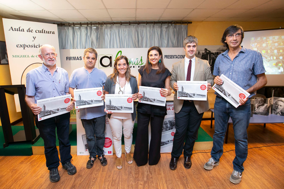 A alcaldesa Inés Rey acudiu esta tarde á presentación dunha nova edición do Calendario Histórico de A Coruña, na libraría Arenas. A novidade contén máis de 600 fitos históricos que tiveron lugar na cidade e que ordenados por días. Están acompañados de trece fotografías antigas procedentes da colección Bartolomé-Chavert, seleccionadas pola Asociación da Prensa coruñesa, en colaboración coa Compañía de Tranvías.