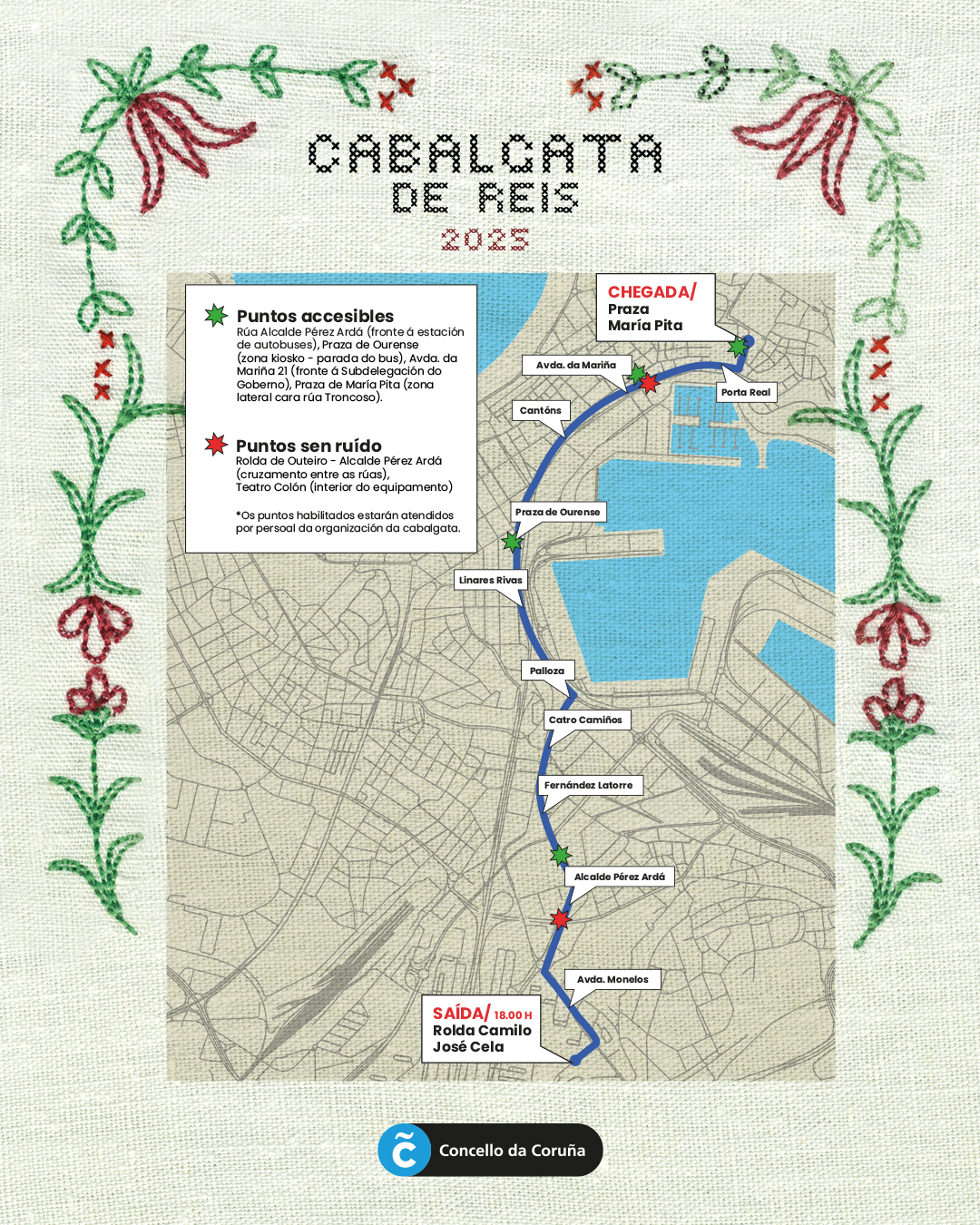 Descarga aquí o PERCORRIDO ACTUALIZADO da Cabalgata de Reis 2025 na Coruña (1 MB)