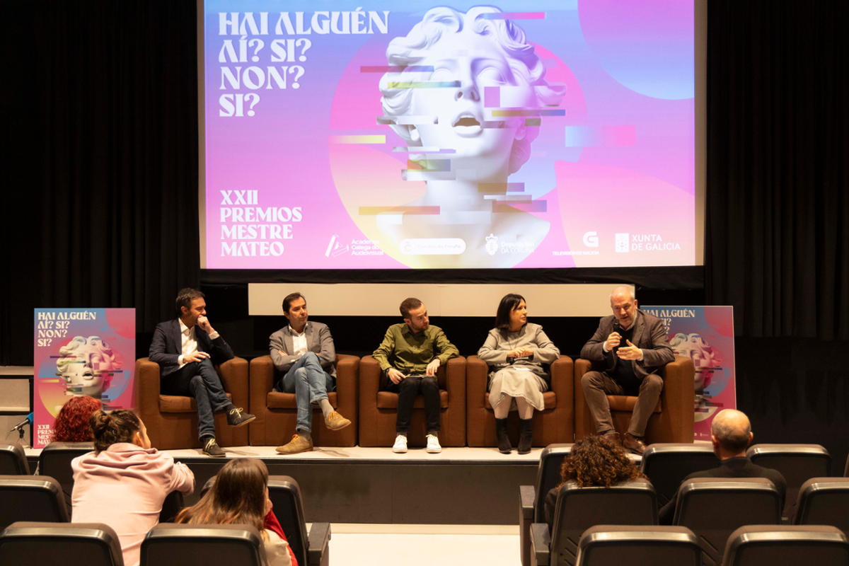 No transcurso do acto tamén se presentou o cartel da vixésimo segunda edición dos premios (inspirado na estética vapor wave) e o eslógan da edición: "Hai alguén aí? Si?, Non? Si?", baseado no Xabarín Club. Gonzalo Castro destacou a importancia que o audiovisual ten para A Coruña, cidade onde José Sellier gravou o primeiro filme acreditado a nivel nacional. "O apoio do Goberno de Inés Rey á industria e ao sector audiovisual queda demostrado con feitos como esta gala dos Mestre Mateo, que este ano abrimos máis se cabe á cidadanía coa celebración desta gran festa no Coliseum", indicou Castro.