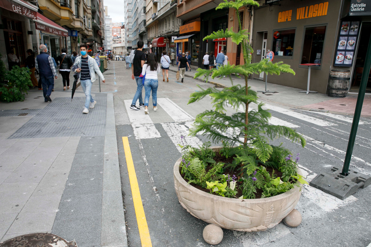 O Goberno local decidiu prorrogar as peonalizacións das rúas Compostela, Primavera, Alcalde Marchesi, Monte das Moas e Emilia Pardo Bazán até o 31 de xaneiro do 2021. Deste xeito, o Concello pretende garantir que se poida manter a distancia social e, ao mesmo tempo, axudar o comercio e a hostalaría de cara á campaña do Nadal. Para que así, explica, poidan realizar previsións a máis longo prazo e rendibilizar os investimentos que fixeron nas terrazas xa que o inicio da desescalada, o Concello, a través dunha instrución, autorizoulles aos locais de hostalaría ampliar as súas terrazas e instalalas de maneira temporal nas prazas de aparcamento sempre que se garantise a accesibilidade das peoas e dos peóns. Con esta medida, o executivo pretendía axudar a paliar as perdas económicas do sector durante a pandemia.