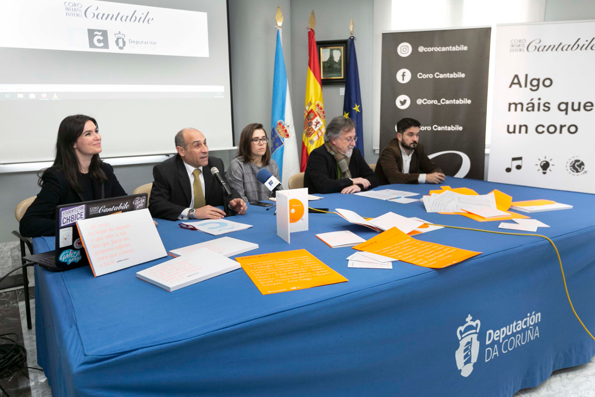 O concelleiro de Cultura, Jesús Celemín, participou esta mañá na presentación do proxecto "Palabras de luz", que o coro Cantabile estreará o 20 de novembro no Teatro Colón ás 20.30 horas, unha cita gratuíta que servirá para coñecer o traballo dunha ducia de poetas e seis compositoras e compositores que crearon "un repertorio de música coral contemporánea". A iniciativa partiu da formación xa que non había obras adaptadas aos tempos actuais en galego e "non só que respondesen ás necesidades de Cantabile, senón ás de calquera coro", contou no acto a poeta Lucía Cernadas, unha das autoras xunto a Antía Otero, Anxo Angueira, Dores Tembrás, Eva Veiga, Estíbaliz Espinosa, Celso Fernández Sanmartín, Carlos Negro, Manuel Rivas, Baldo Ramos, María Lado e Pilar Pallarés.