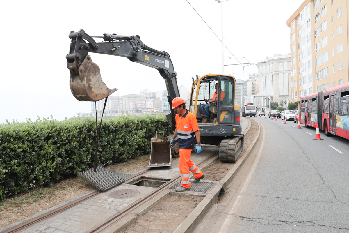Hoxe tamén comezaron as obras do carril para corredoras e corredores que se está a instalar no Paseo Marítimo sobre as vías do tranvía cun asfalto resistente á erosión do mar e específico para correr. A nova senda, que irá desde Os Surfistas ata As Escravas, servirá para desconxestionar o Paseo Marítimo e o carril bici.