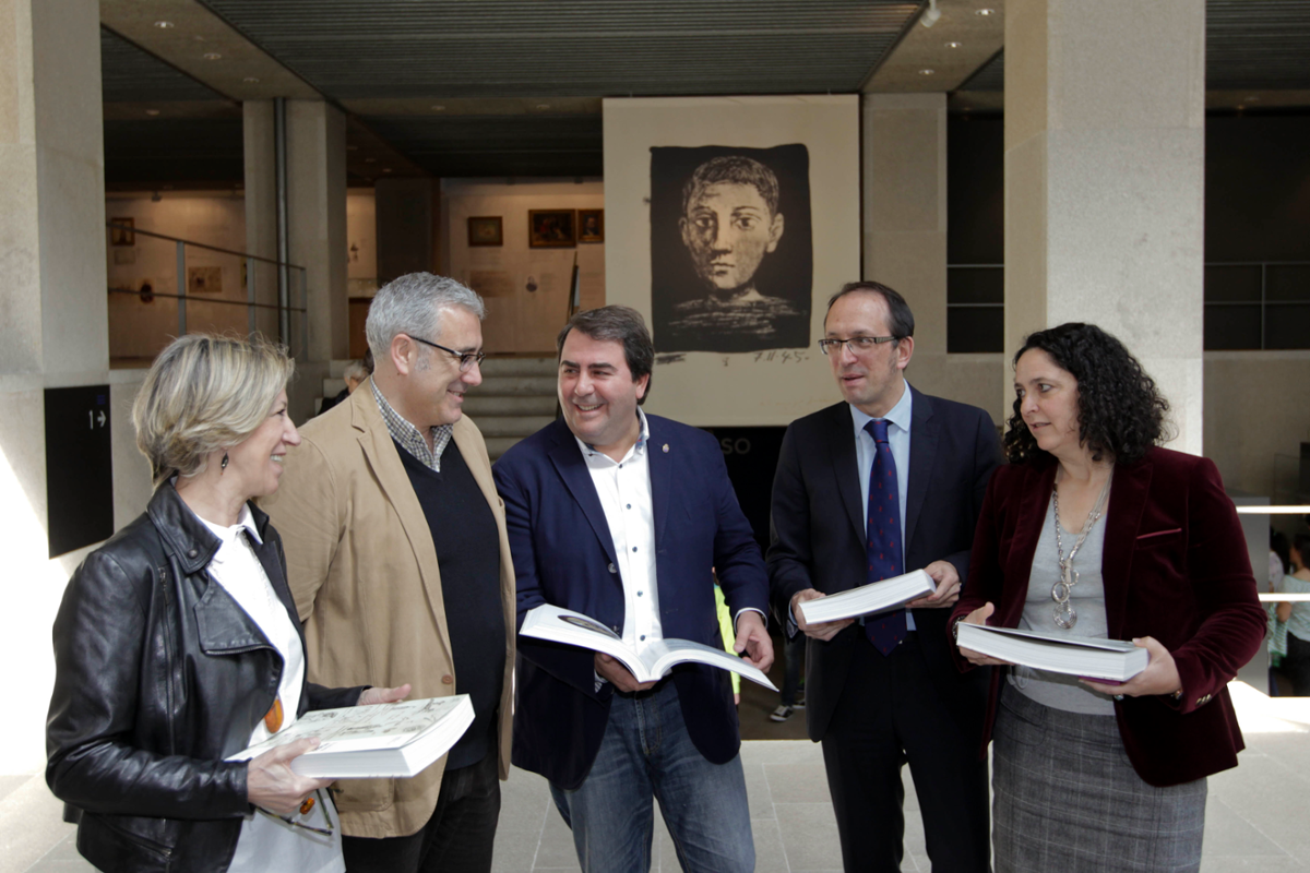 El alcalde de A Coruña, Carlos Negreira, y el secretario xeral de Cultura, Anxo Lorenzo, han presentado esta mañana en el Museo de Belas Artes el catálogo de la exposición El primer Picasso. A Coruña 2015. El libro, de 469 páginas, incluye 308 ilustraciones y ha sido realizado por nueve autores. Se han editado dos versiones, en gallego y en castellano, ambas con traducción al inglés.