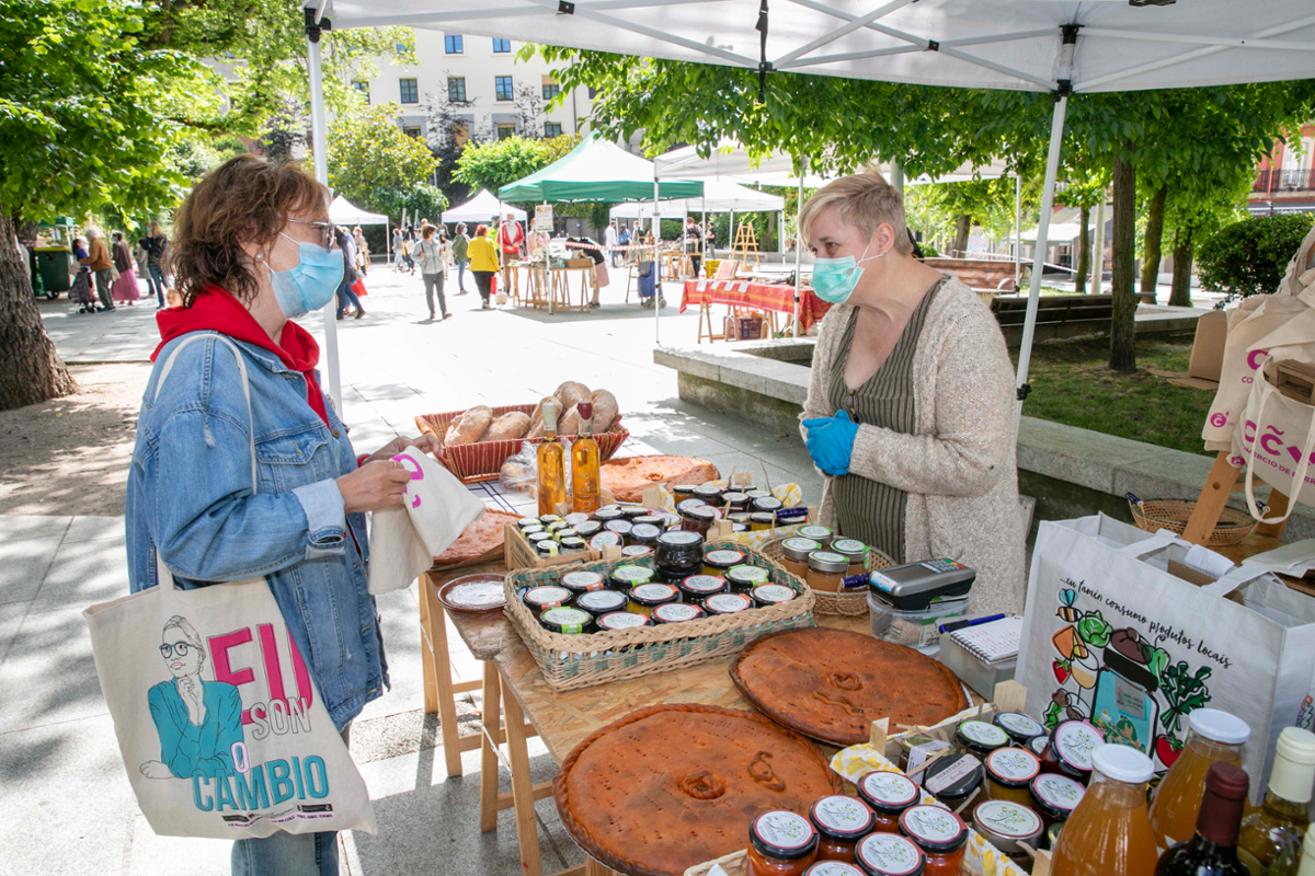 A concelleira de Medio Ambiente, Comercio e Emprego visitou esta mañá o mercado ecolóxico, que volveu ao Campo da Leña tras a suspensión ocasionada pola crise sanitaria