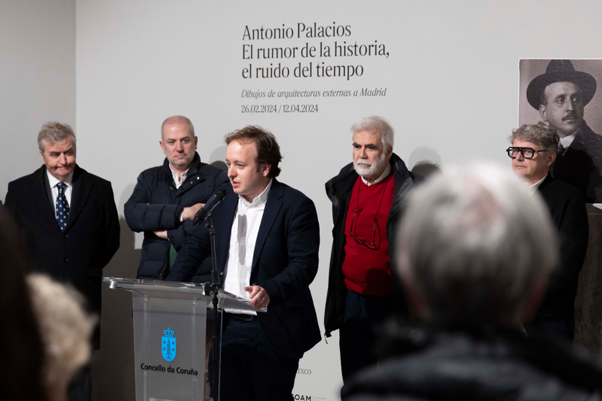 Neste contexto, e tras unha estadía previa en Madrid, a mostra 'Antonio Palacios. El rumor de la historia, el ruido del tiempo' chega á Coruña en virtude do convenio existente entre o Concello da Coruña e a propia Fundación Arquitectura COAM, promovido polo Goberno de Inés Rey co obxectivo de que a cidade sexa receptora de futuras exposicións de interese nacional no eido da arquitectura.