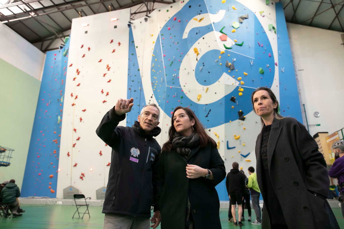 A alcaldesa da Coruña, Inés Rey, presidiu a primeira xornada de actividade do novo rocódromo municipal, nas instalacións do Frontón de Riazor. A rexedora asistiu ao inicio do Campionato Galego de Escalada Combinada, que se celebra esta fin de semana na cidade.