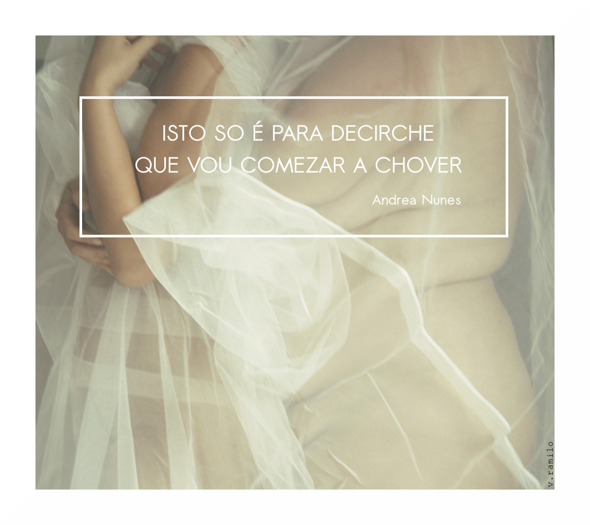 Verónica Ramilo: A través dos meus estudos de fotografía, estou traballando nun libro de artista inspirado na obra O sentido do abraio, de Rachel Carson, unha bióloga pioneira do movemento ecoloxista que fixo este texto dirixido a nais e pais, para animalos a explorar a natureza coas súas crianzas co fin de cultivaren en familia o sentido do abraio. Inspirándome neste libro, quero adaptalo ao meu propio cambio e abraio socio-cultural e rexistrar os descubrimentos que estou a ter e que máis me están a sorprender.