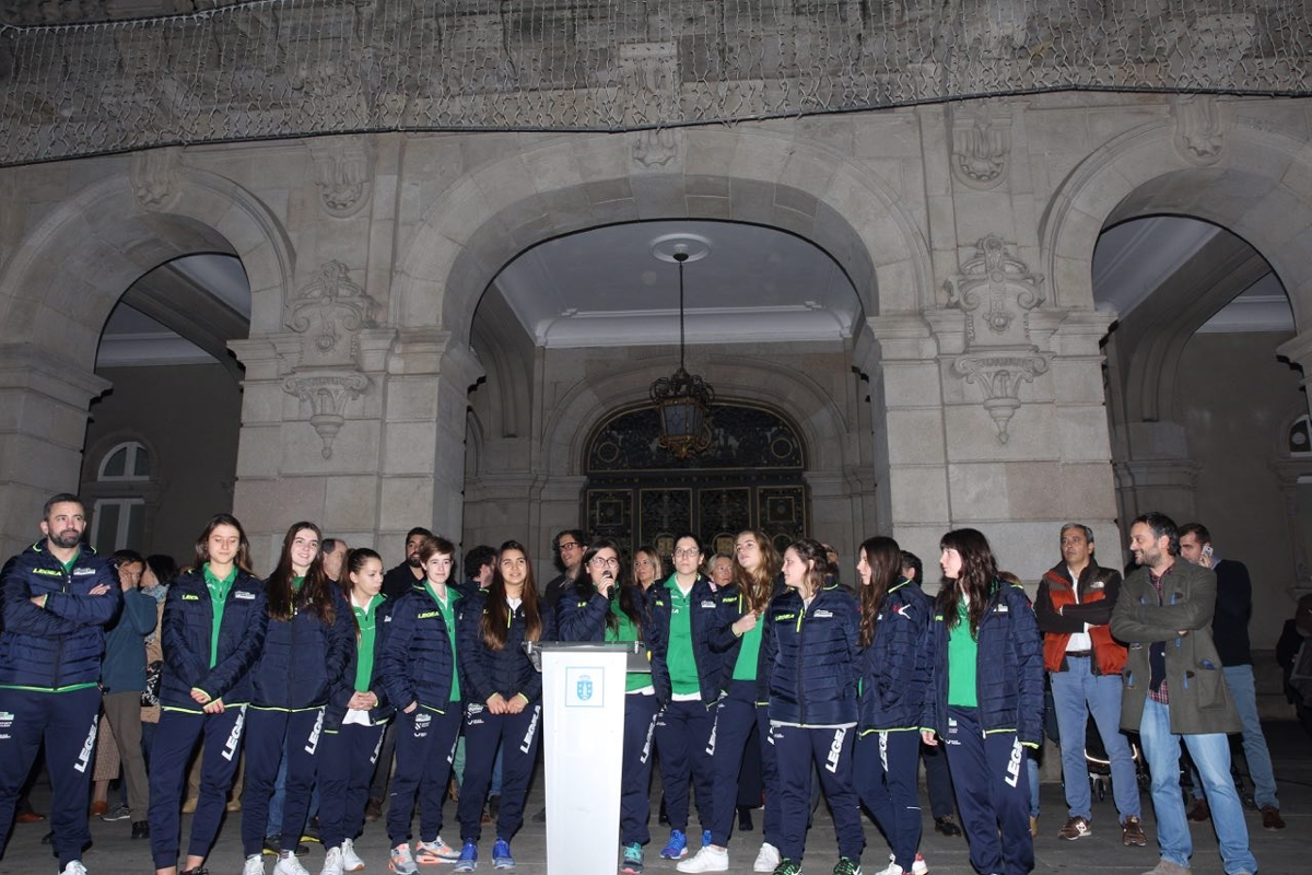 No acto de prendido, que tivo lugar na Praza de María Pita, Ferreiro estivo acompañado, ademais de por concelleiros e concelleiras, polas xogadoras do Hóckey Club Liceo, que este ano veñen de ascender á categoría de honra estatal