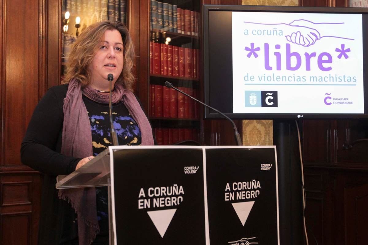 A concelleira de Igualdade e Diversidade tamén anunciou hoxe a posta en marcha de distintas actividades e accións de cara ao 25 de novembro, Día Internacional contra as Violencias Machistas, entre as que avanzou a campaña Coruña En Negro, que se centrará tanto no comercio de proximidade como nas entidades e asociacións deportivas da cidade